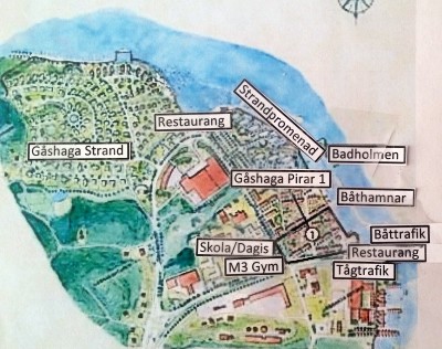 - trädäck, pirar, gatorna Norra Hamnpromenaden och Södra Hamnpromenaden och badön förvaltas av Gåshaga Hamnpromenad Samfällighetsförening (Gemensamhetsanläggningen 1, GA1).